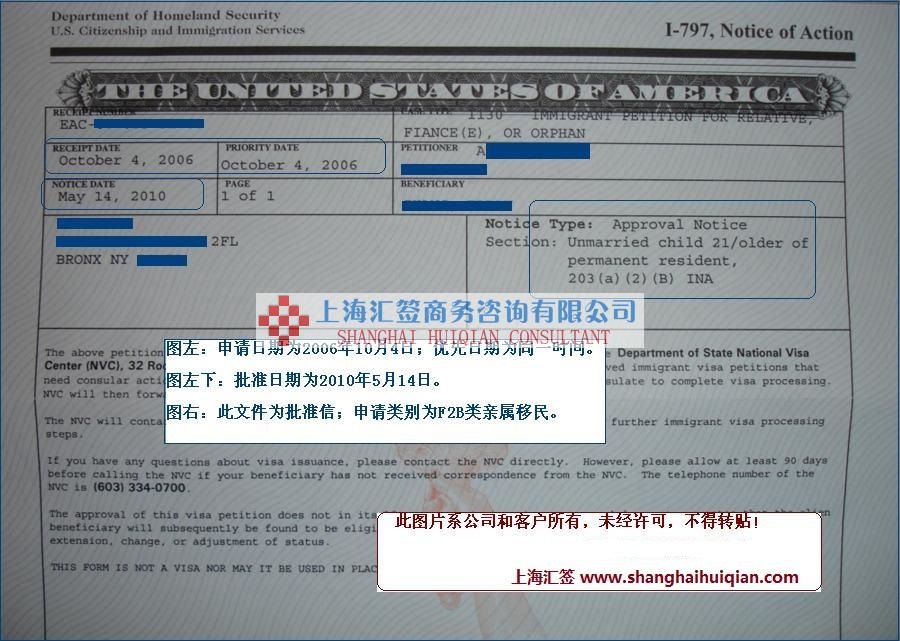 2010年5月4日我公司美国亲属移民第二类优先F2A类申请客户最新接到的美国移民局发来的移民批准信(Approval Notice)!!!