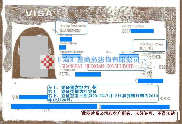 2010年7月16日,我公司K1签证申请客户成功获得美国驻广州大使馆签发的K1签证!!!