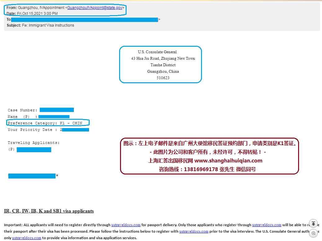 2021年10月15日,我公司美国K1签证(未婚妻签证申请)客户成功收到面试通知P4邮件!